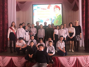 Почетными гостями данного мероприятия стали воины-интернационалисты, члены Общественной городской организации Ветеранов Афганистана города Зверево, во главе с ее председателем - Гулюта Виктором Николаевичем. На торжественном мероприятии Виктор Николаевич раздал ребятам задания, которые они будут выполнять на протяжении месяца, это участие в таких акциях как: «Открытка солдату», «Посылка солдату», ряд спортивных мероприятий «Служу России», которые пройдут в рамках месячника и многое другое. Кроме этого, на торжественном мероприятии школе была передана в дар книга «На войне свой край прославили» изданной в рамках реализации первого проекта «Наследники победы» победителя Фонда президентских грантов 2019 года.
